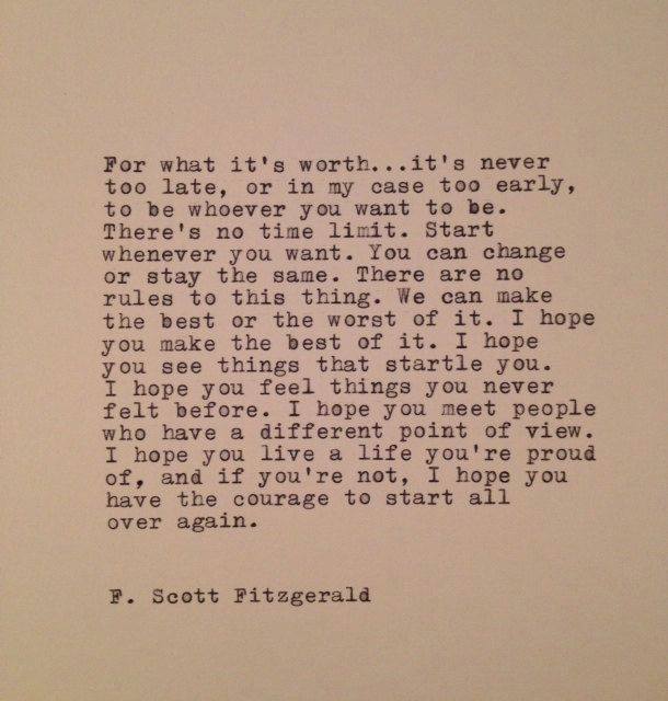 What a great quote. I love the last line…”I hope you live a life you’re proud of, and if you’re not, I hope you have the courage to start all over again.”